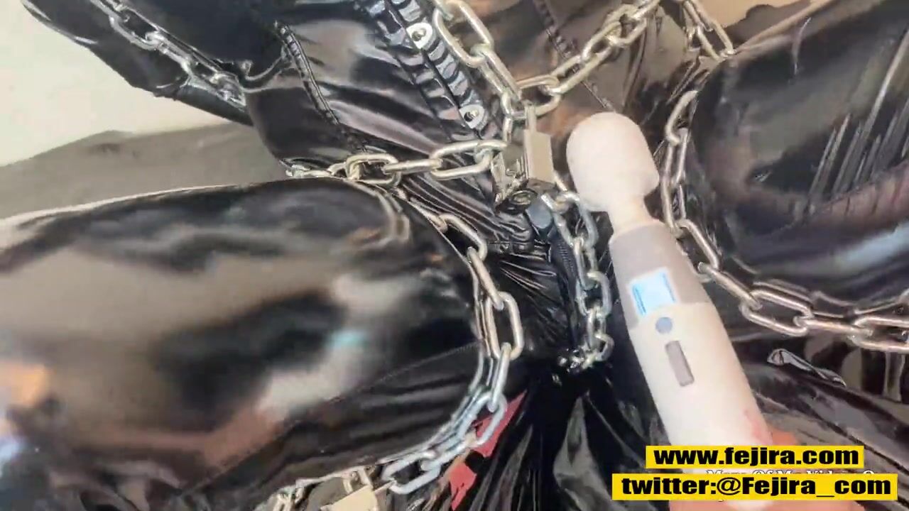 Fejira com Shiny bodysuit chain bondage