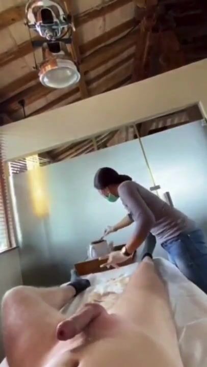 Man Cums on his Asian Esthetician while she Wax him
