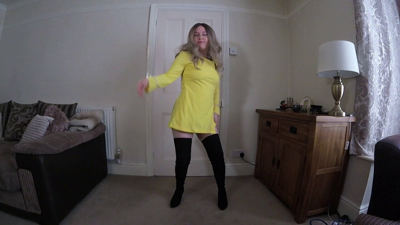 Star Trek cosplay commander in thigh boots striptease
