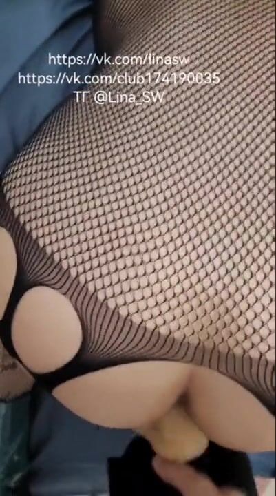 The neighbor fucked a big dildo and then a cock.
