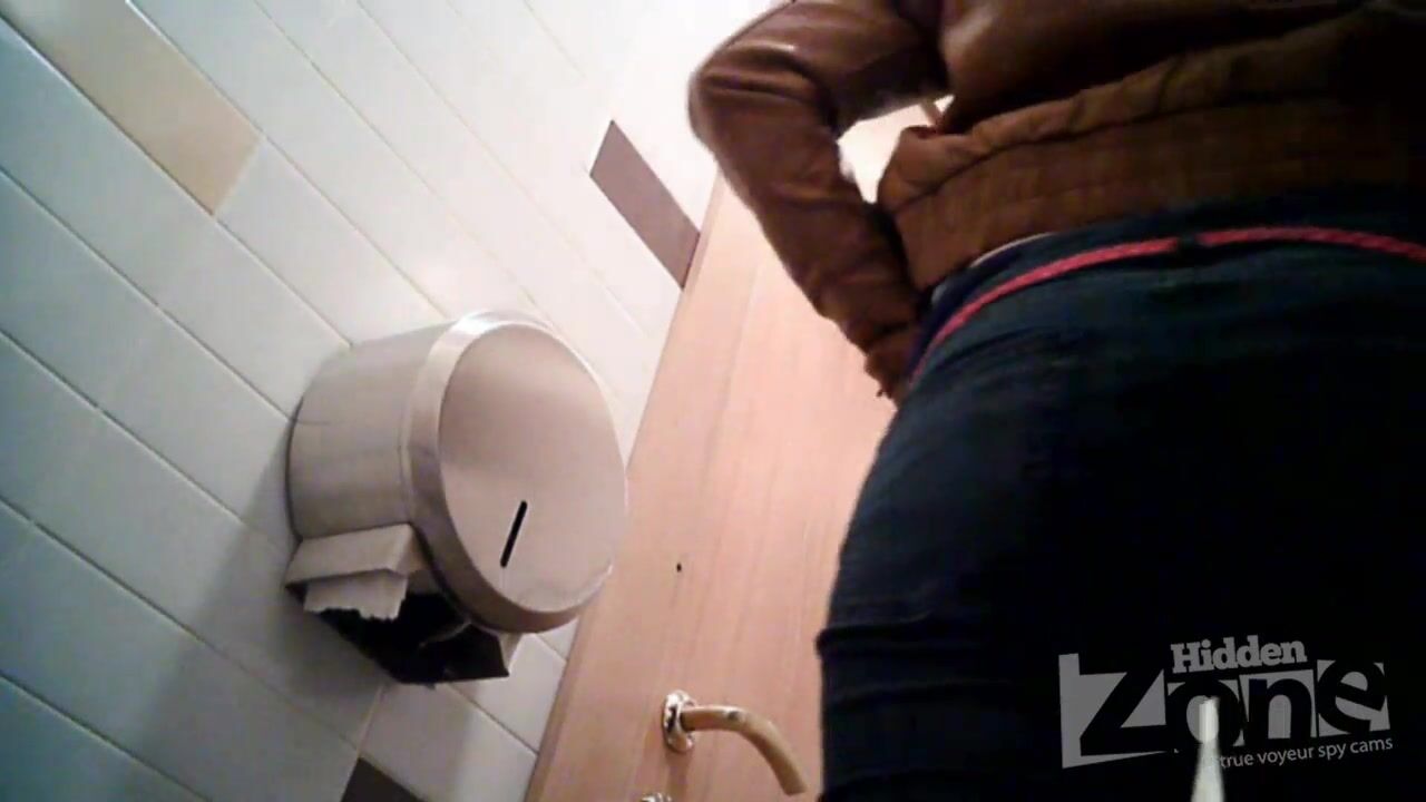 Straight guy jerking off in public toilet