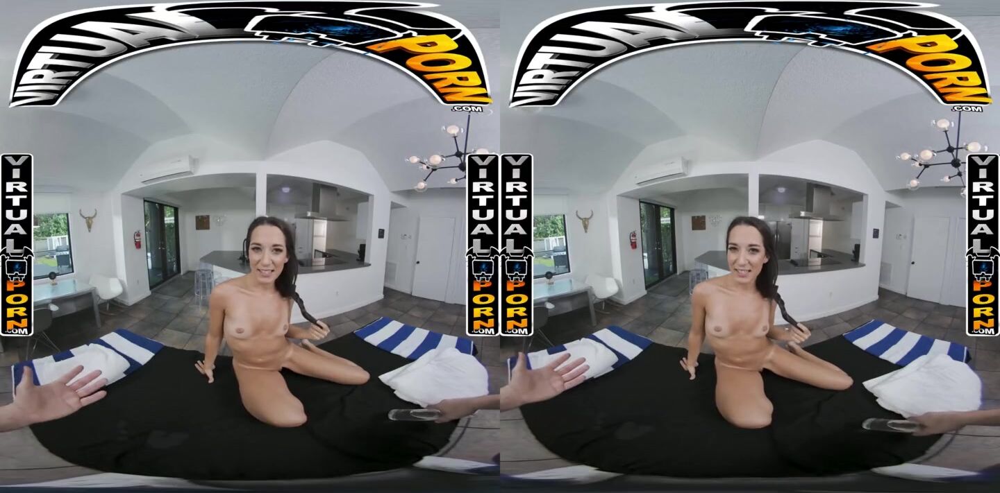VIRTUALPORN - Petite Brunette Hottie Freya Von Doom Oiled Up And Dicked Down In VR